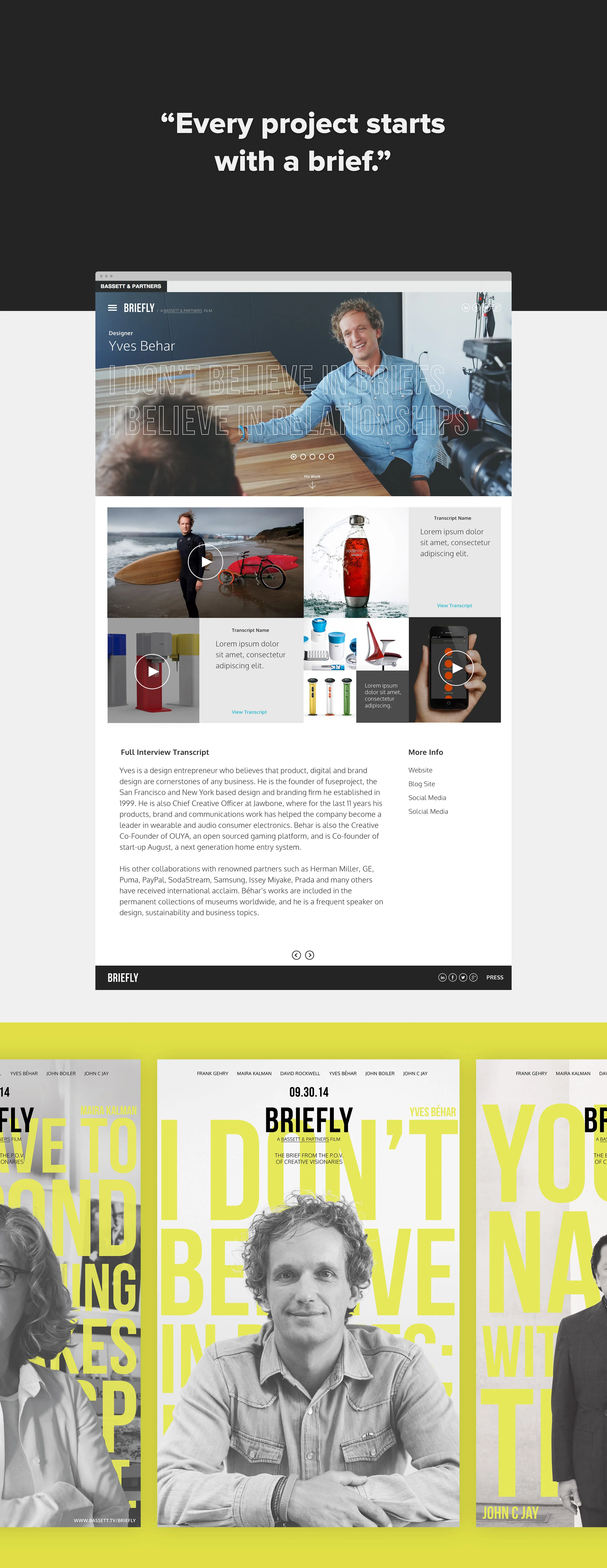 Briefly brought together some of the most amazing creatives to share their perspective on creative briefs. I had the role to design & create concepts for the digital experience. Going through the process and refinements, we gradually narrowed down designs for all of the pages within the site. I continued the work outside of the digital medium into print with some promotional posters.